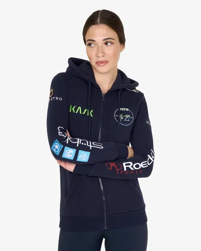 Женская приталенная толстовка с множеством логотипов, выполненная из мягкого хлопка, обеспечивающего свободу движений и комфорт в любой ситуации.